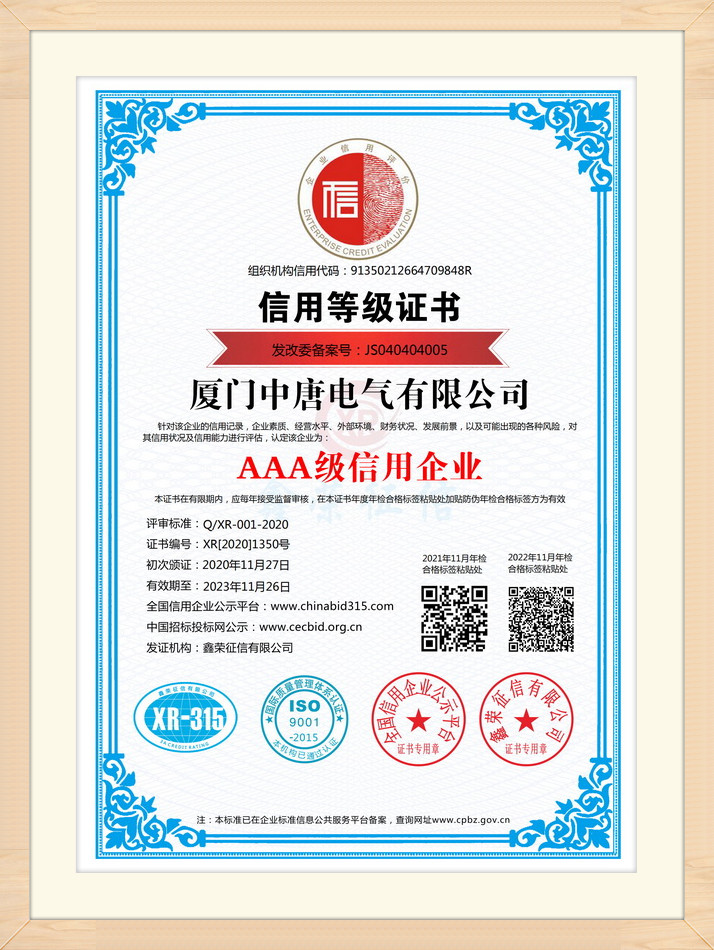 • AAA級質(zhì)量服務(wù)誠信單位(英文)